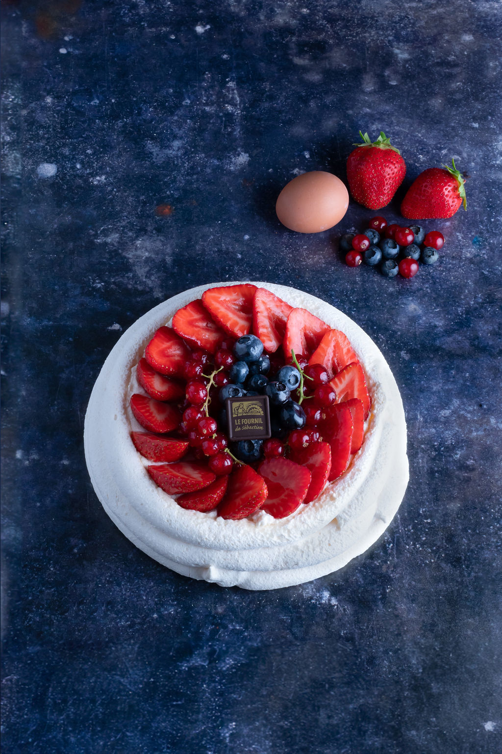 Meringue, gevuld met slagroom en rode vruchten. In de koelkast bewaren en eten op de dag van aankoop. Mijn producten worden door mensen gemaakt, niet door machines. Vorm en kleur kunnen afwijken van de foto. My products are made by hands, not by machines. Shape and colour may differ from the actual product.