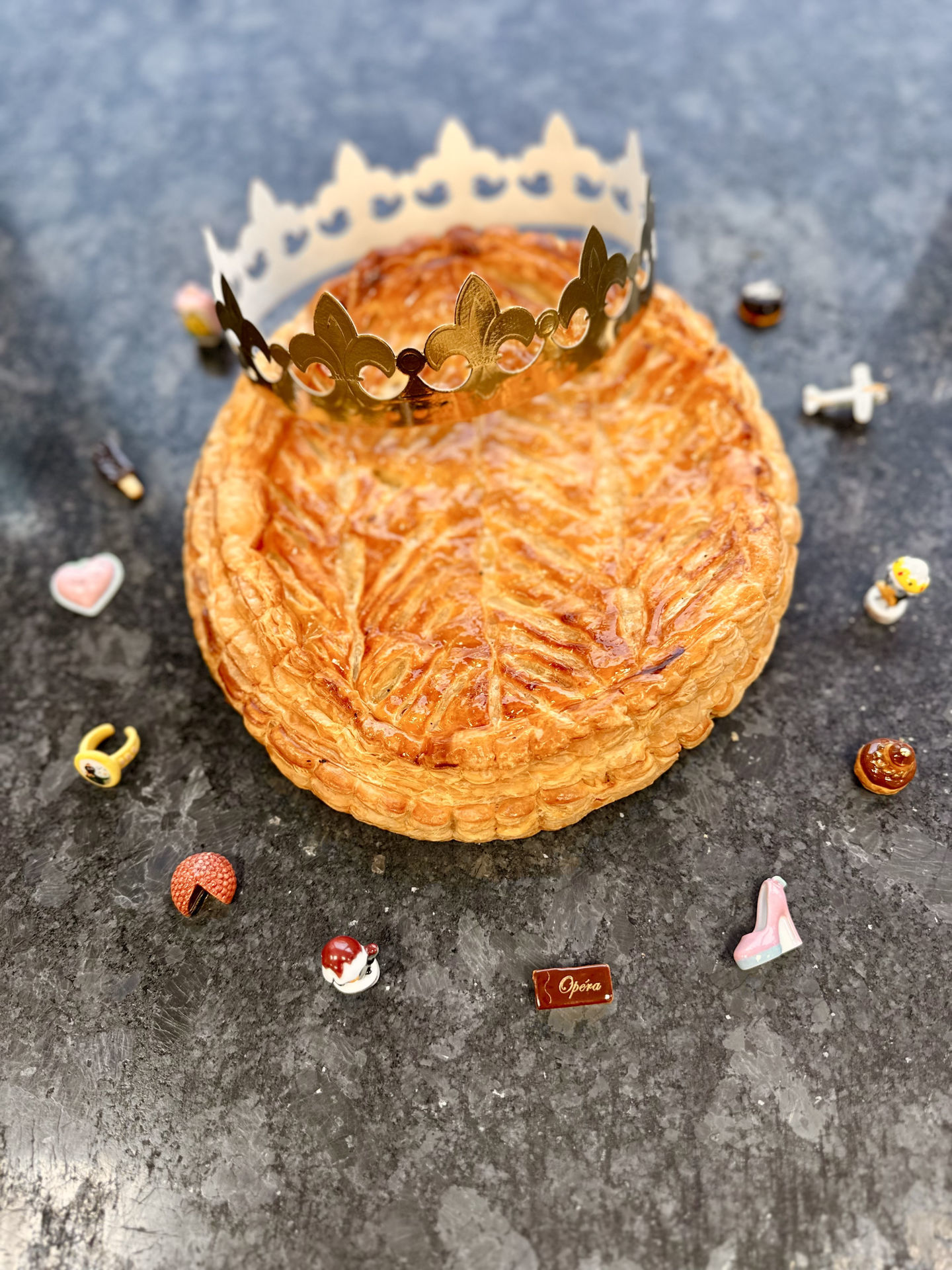 31 december t/m 31 Januari: Traditionele Driekoningskoek voor 8 personen. Gemaakt van bladerdeeg en gevuld met amandelcrème en stukjes appel. Natuurlijk zit er ook een "fève" in, een stenen figuurtje. Degene die het stenen figuurtje aantreft in zijn stuk, is koning(in) en mag het bijgeleverde papieren kroontje opzetten!