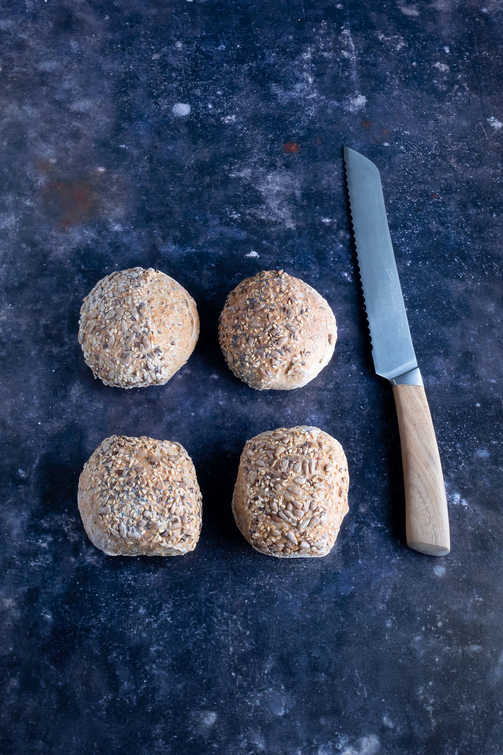 Ingr: volkoren tarwemeel, zuurdesem, gejodeerd zout, sesam, maanzaad, lijnzaad, zonnepit, verse gist (0,5% / kg meel)