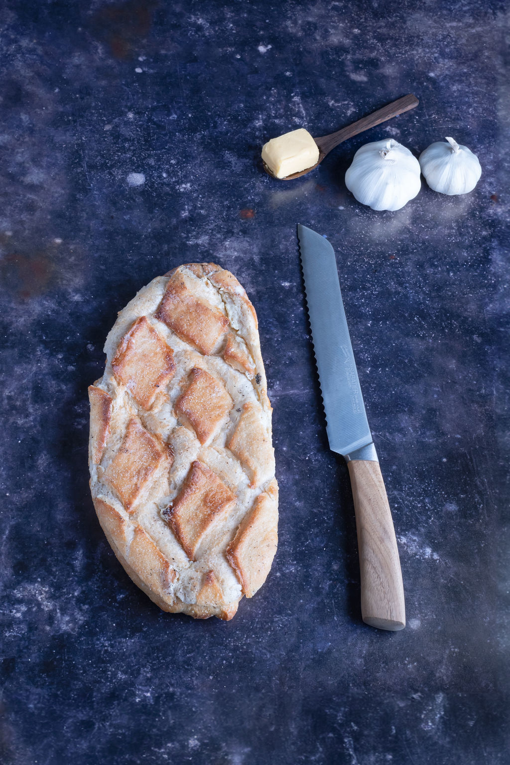 Knoflookbrood. Moet thuis 5 à 10 minuten in de oven worden verwarmd, op 180 graden Celcius. In stukjes serveren als borrelhapje, of bij een salade. Mijn producten worden door mensen gemaakt, niet door machines. Vorm en kleur kunnen afwijken van de foto. My products are made by hands, not by machines. Shape and colour may differ from the actual product.