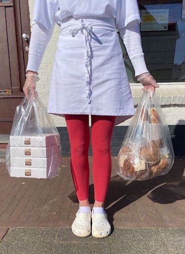 In een medium tas passen 6p.-taartdozen (FOR SMALL BOXES OF 6p-TARTES OR 4 tartelettes), of tot 15 baguettes/broden/broodjes.